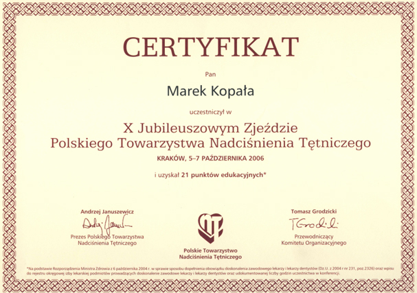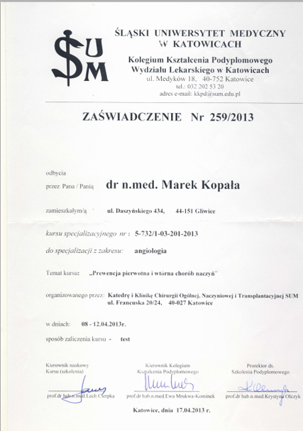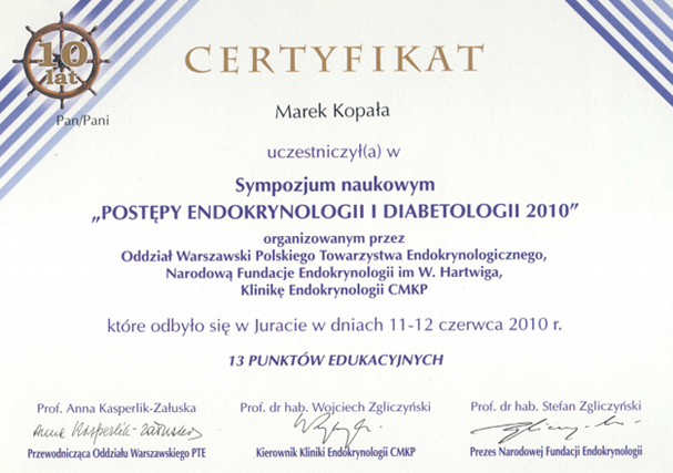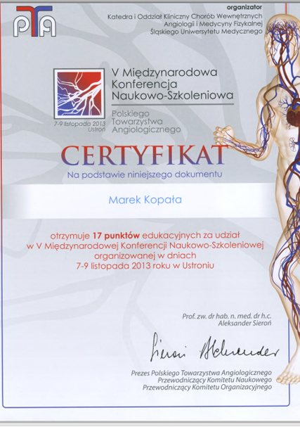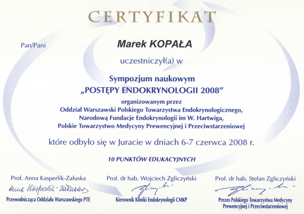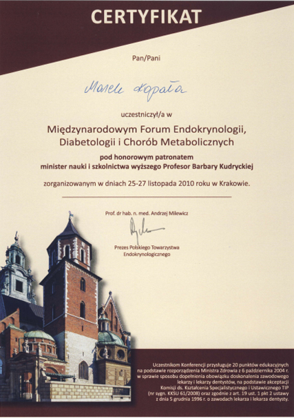 Polskiego Towarzystwa Angiologicznego, Polskiego Towarzystwa Endokrynologicznego,