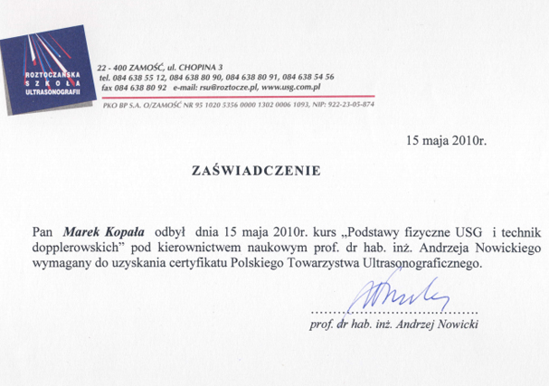 Odbyte staże i szkolenia potwierdzone certyfikatami: